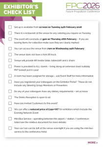 Please download the Information for Exhibitors and the Exhibitors Check List below.